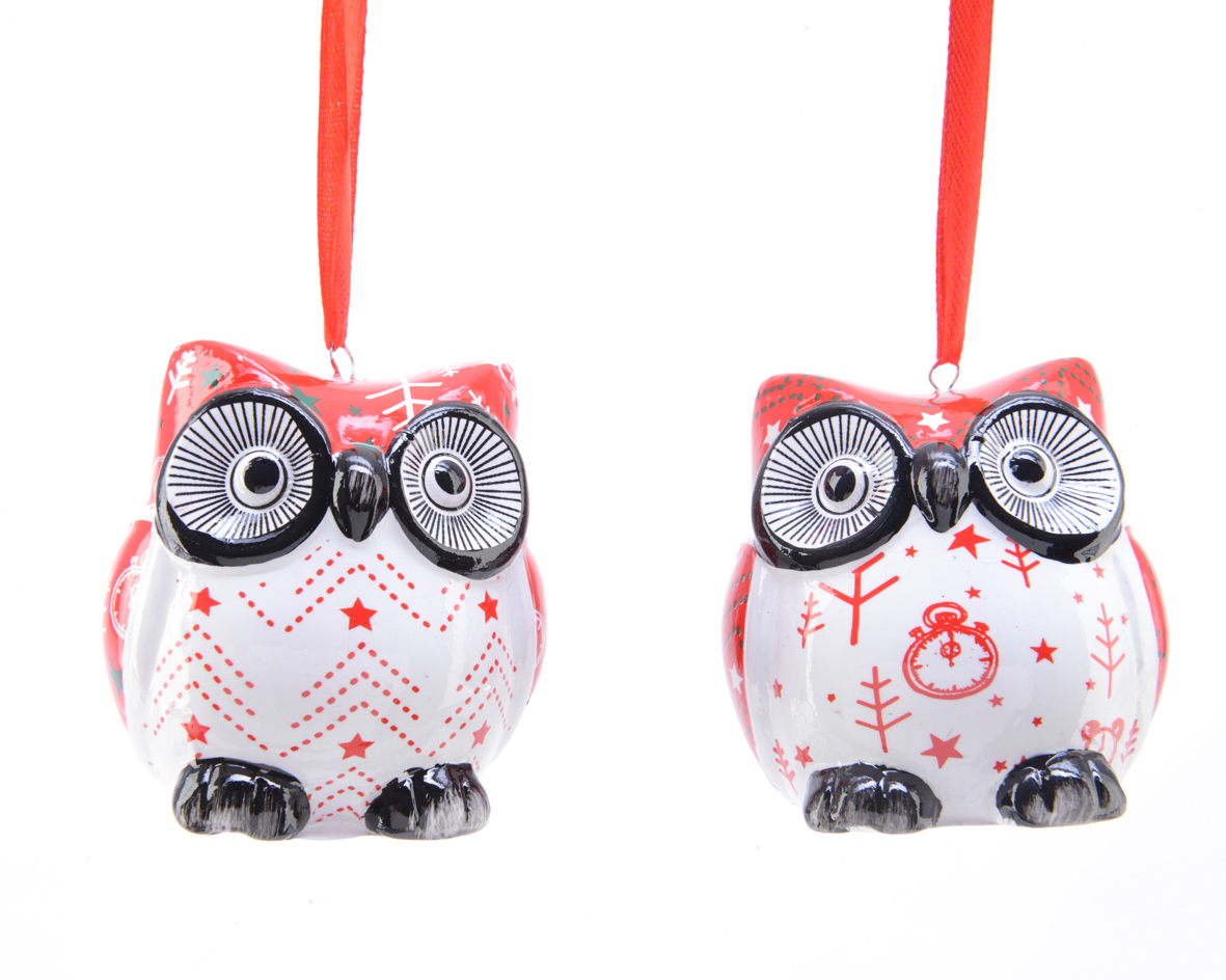 WHITE-RED OWL Porcelain 6*6.5*6.8