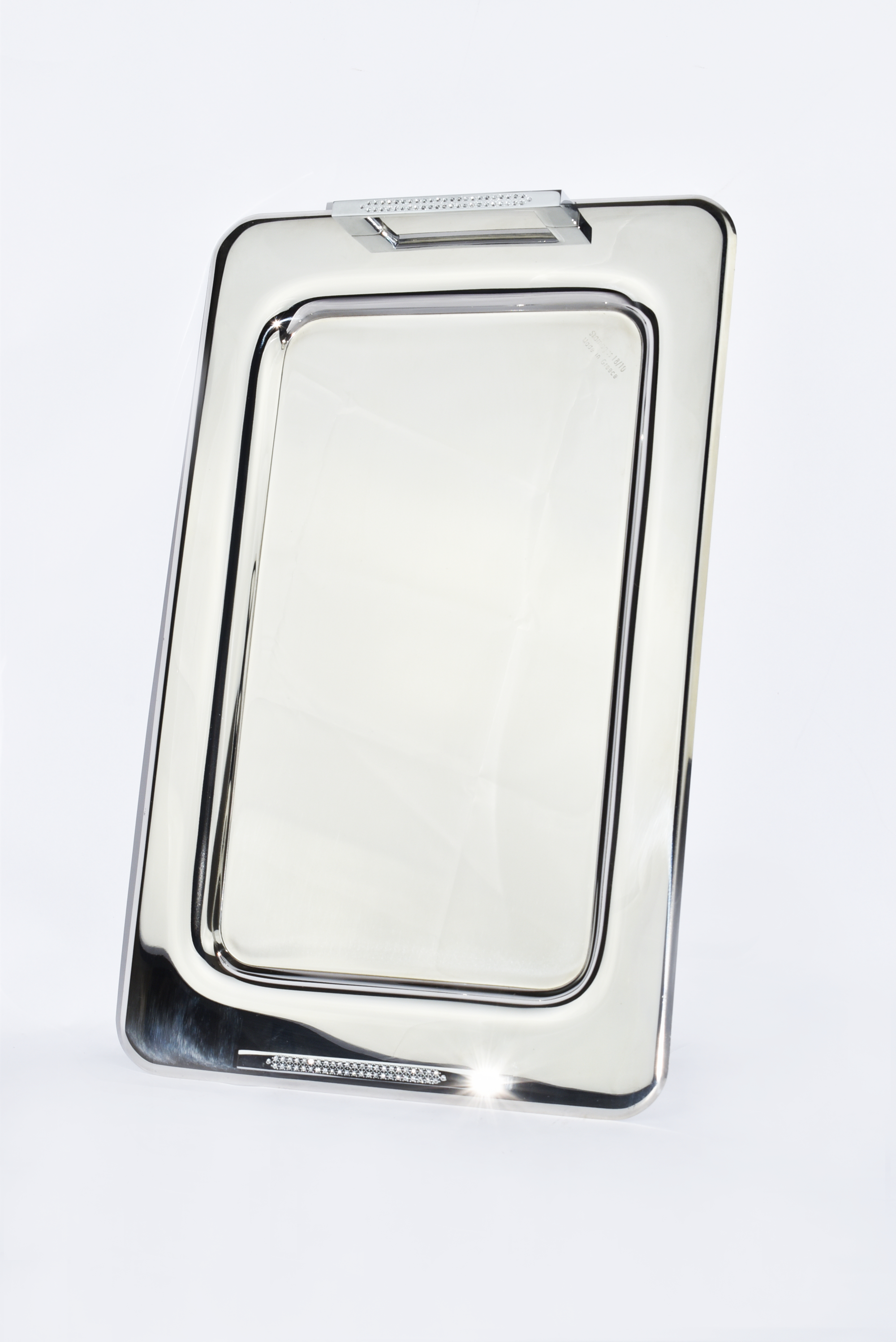 RECTANGULAR TRAY 18/10 WITH SHINNY WITH SWAROVSKI HANDLE SMALL Inox 38*25
