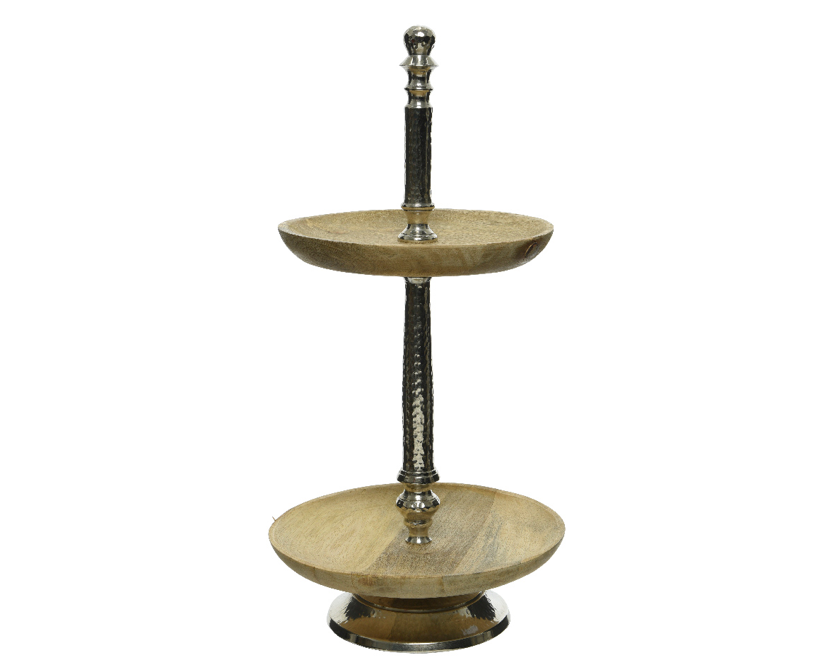 2 LAYERS PLATTER MASSIVE BEATEN WITH SILVER Kaemingk Metal Φ30*60Υ