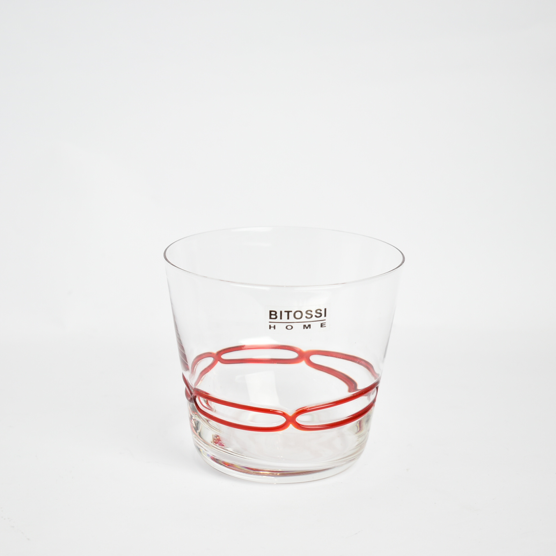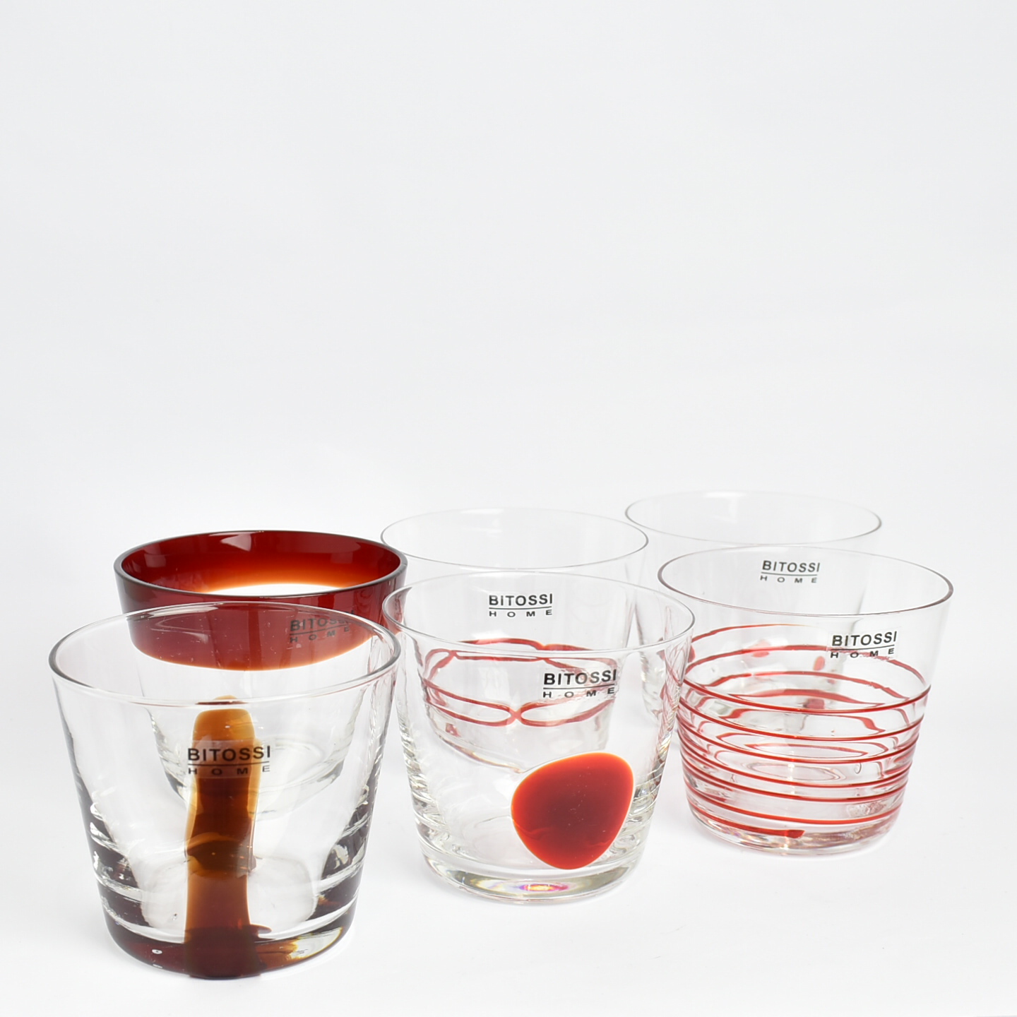 WHISKEY GLASS HANDMADE BLOWED RED GLASS BITOSSI 6 DIFFERENT DESIGNS SET OF 6 PCS Blown glass Φ9,5Χ8,5h