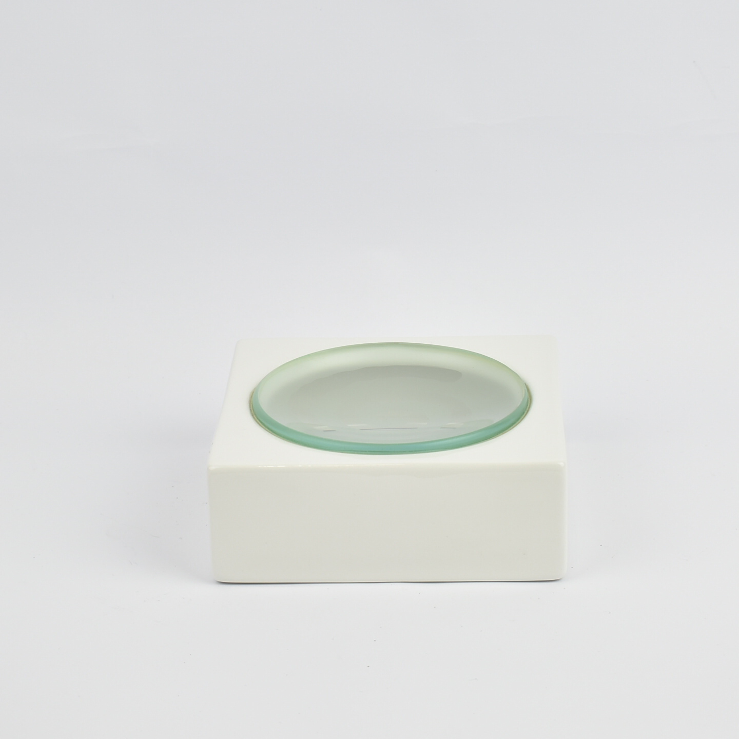 SOAP CASE WHITE WITH GLASS Porcelain 12*12*4