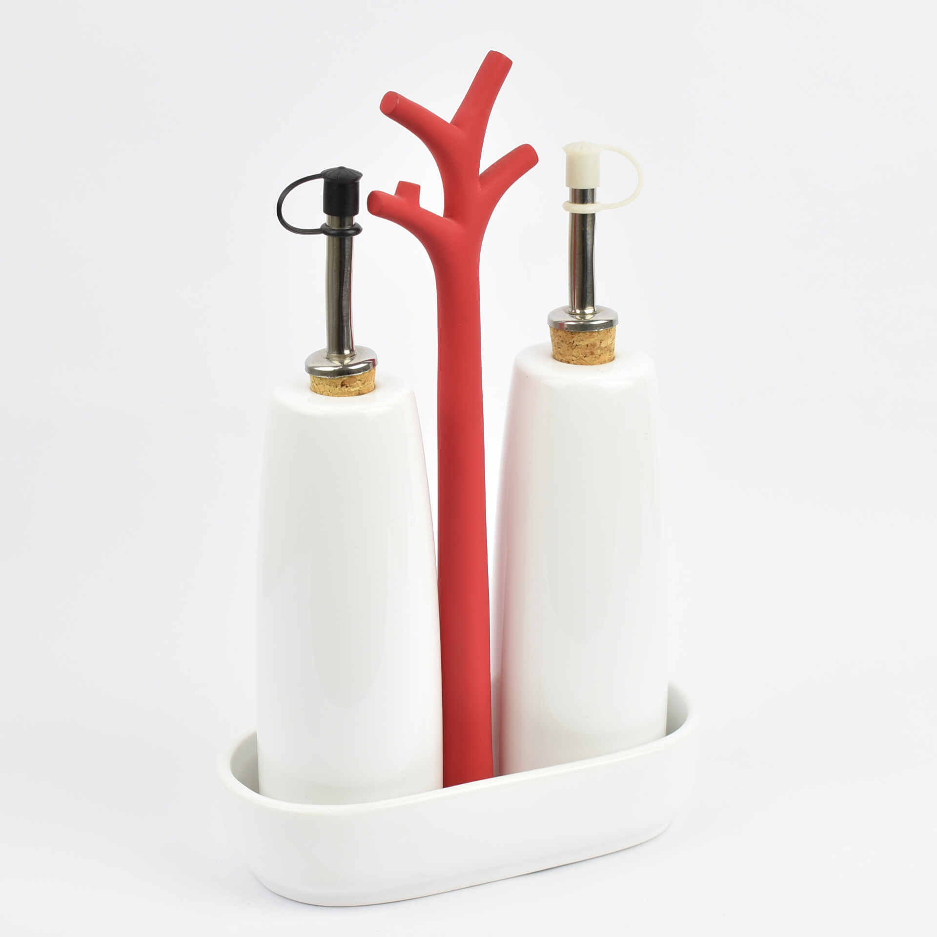 OIL AND VINEGAR WHITE WITH RED HANDLE Porcelain 17Χ8,5Χ27