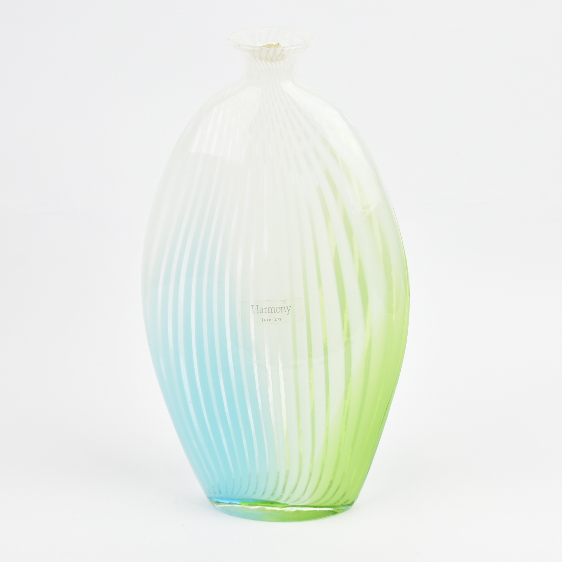 VASE WITH BLUE, LIGHT GREEN AND WHITE STRIPES Glass 14*7*23