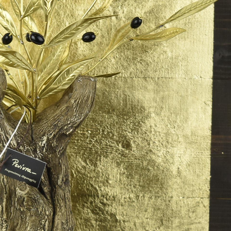 GOLD OLIVE TREE IN BOARD Wood 35*12*46