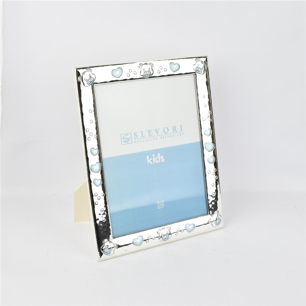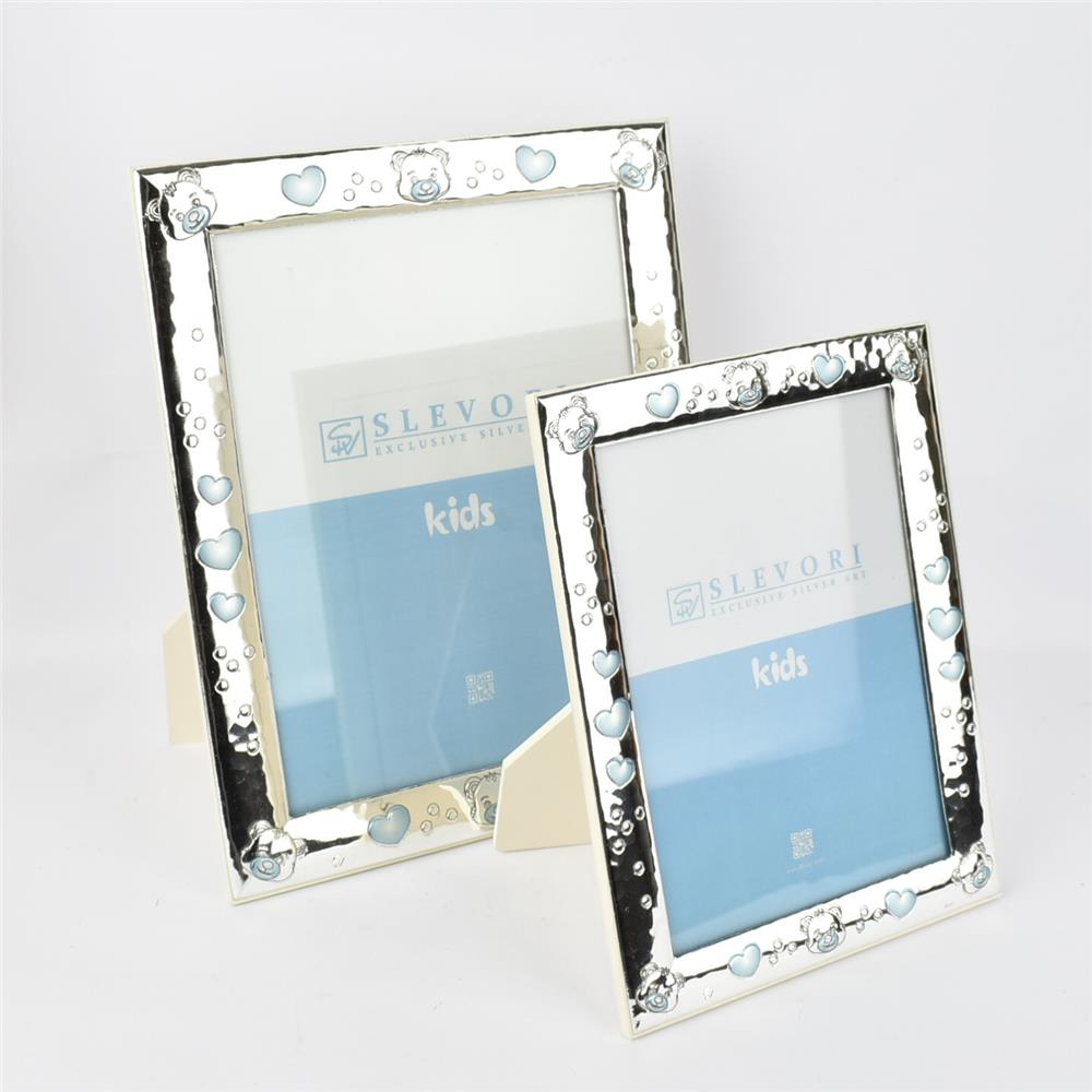 SILVER WALL AND TABLE FRAME WITH LARGE BLUE BEAR (15X20) Silver 21Χ26 CM