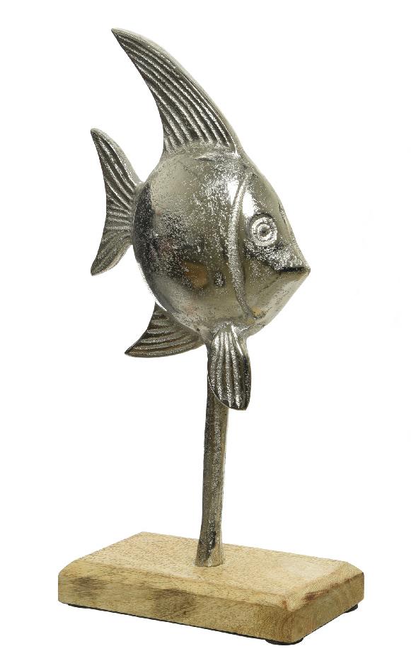 ROUND DECORATIVE SILVER FISH IN BASE Wood 15*6*31Υ