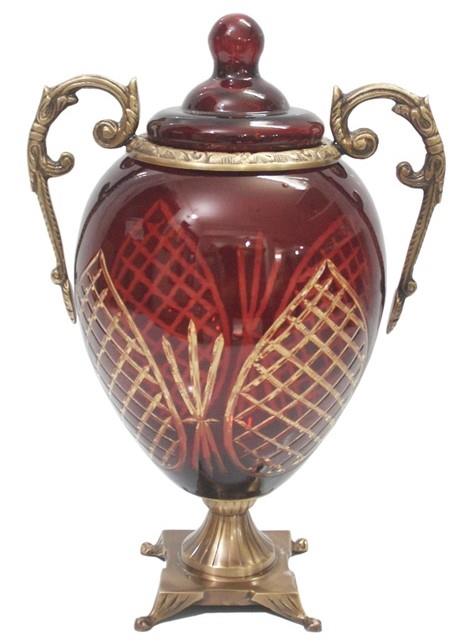 HANDMADE AMPHORA WITH RED CUTTING GLASS Glass 18*36