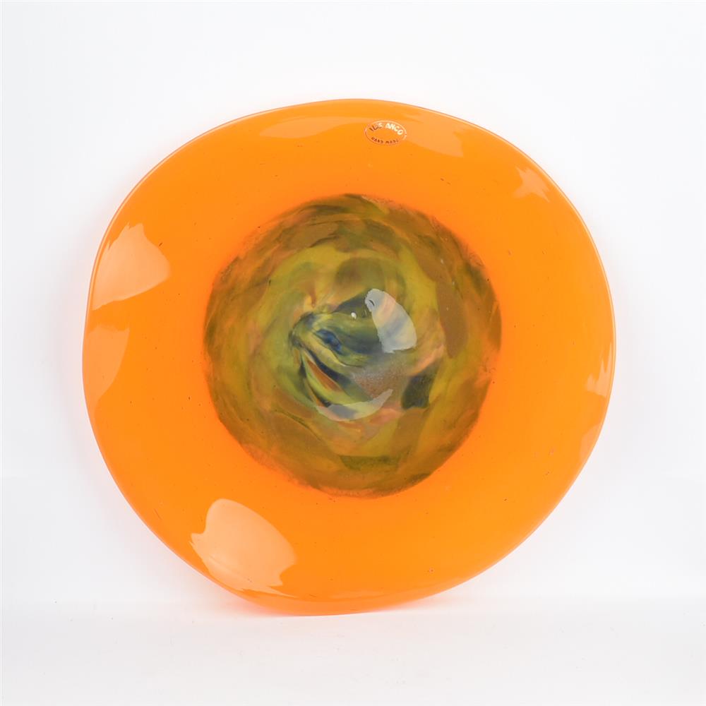 HANDMADE BLOWN ORANG PLATTER Glass Φ37.5