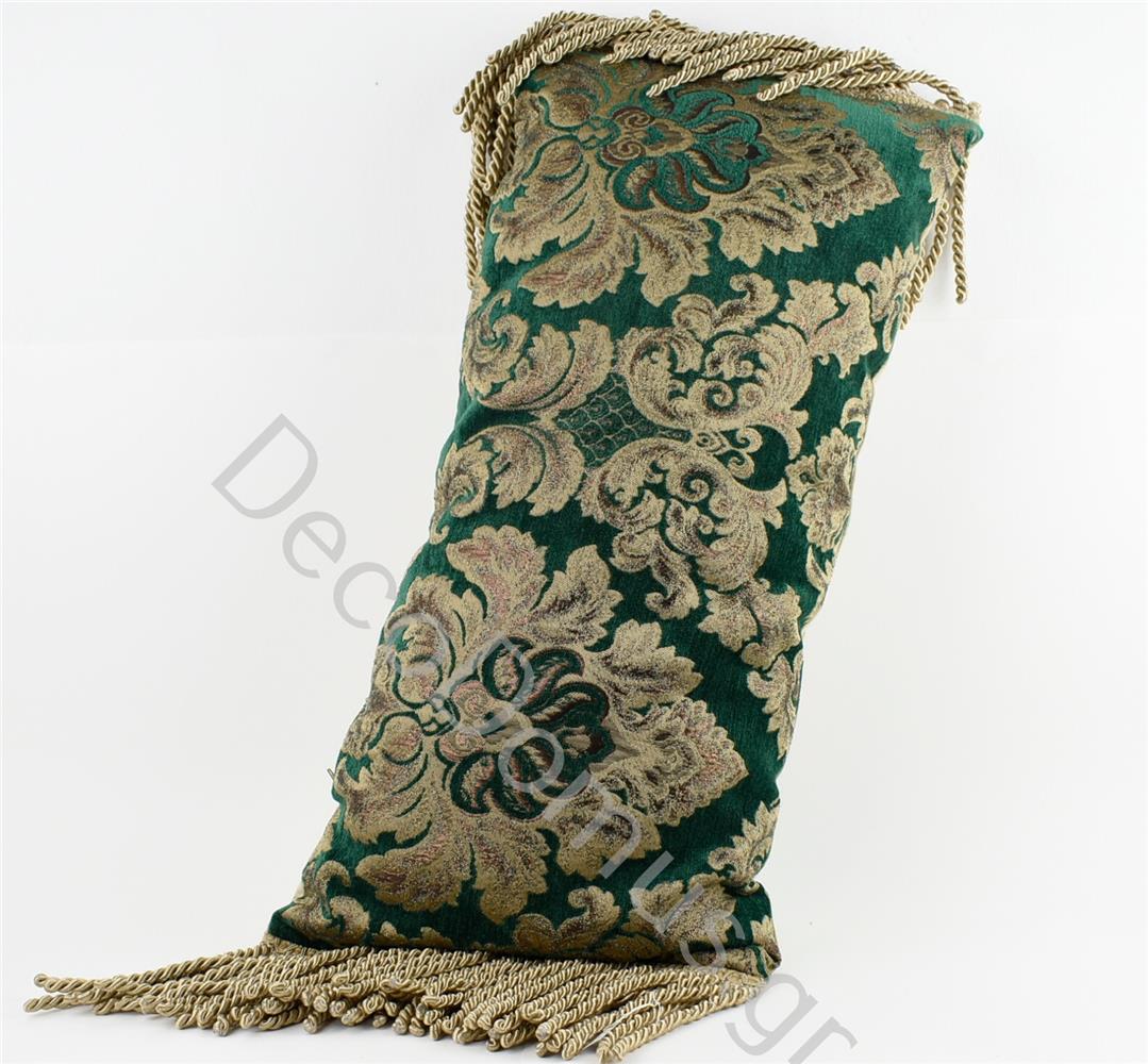 GREEN-BEIGE PILLOW WITH GOLD FRICTIONS WITH FILLING 60*30