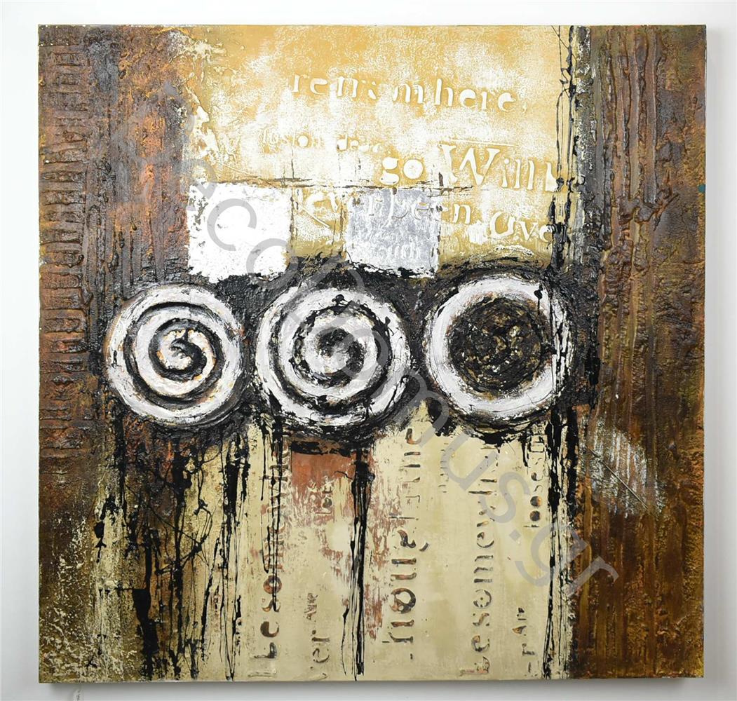 HANDMADE PAINTING 3 CIRCLES BEIGE-BROWN-BLACK 90*90