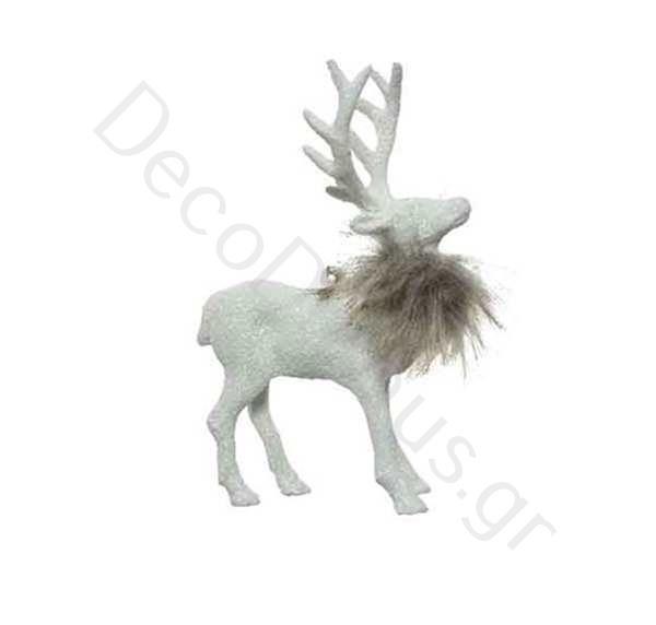 WHITE DEER WITH FUR AND RAISED HORNS Synthetic 11*3*H15