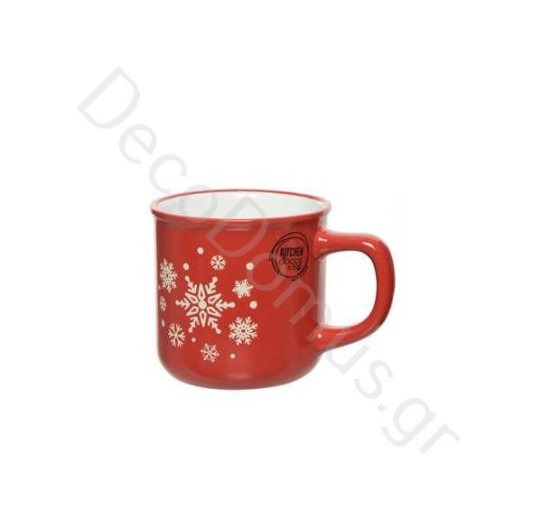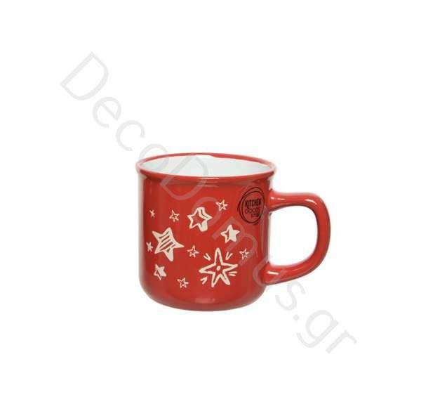 CHRISTMAS MUG STONEWARE RED WITH STARS- KAEMINGK Porcelain 9.5*7.5*Η8.5