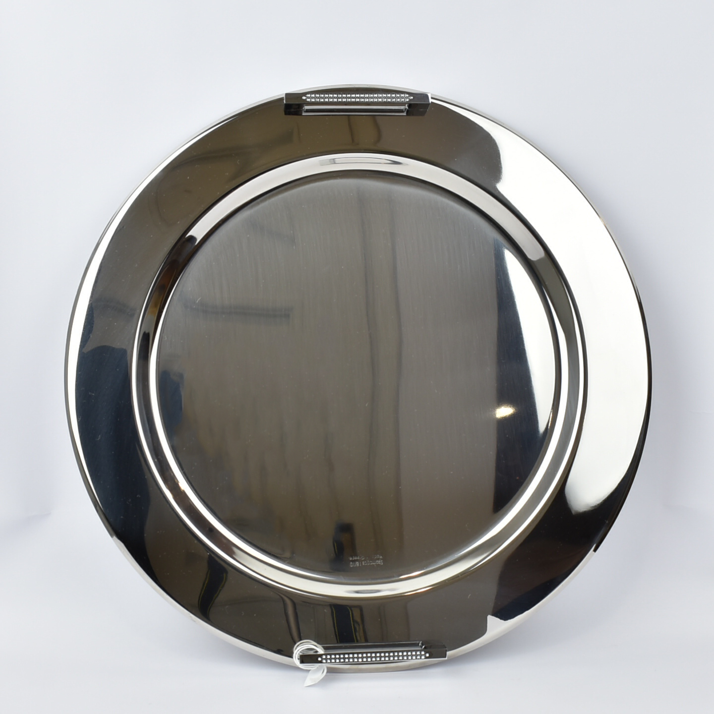 ROUND TRAY 18/10 WITH SWAROVSKI HANDLES Inox Φ42Χ5Υ