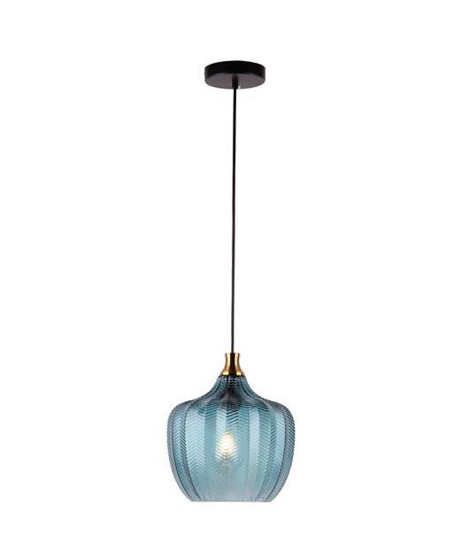 PENDANT LIGHT WITH BLUE GLASS AND BRASS DETAIL Metal Φ24xh28