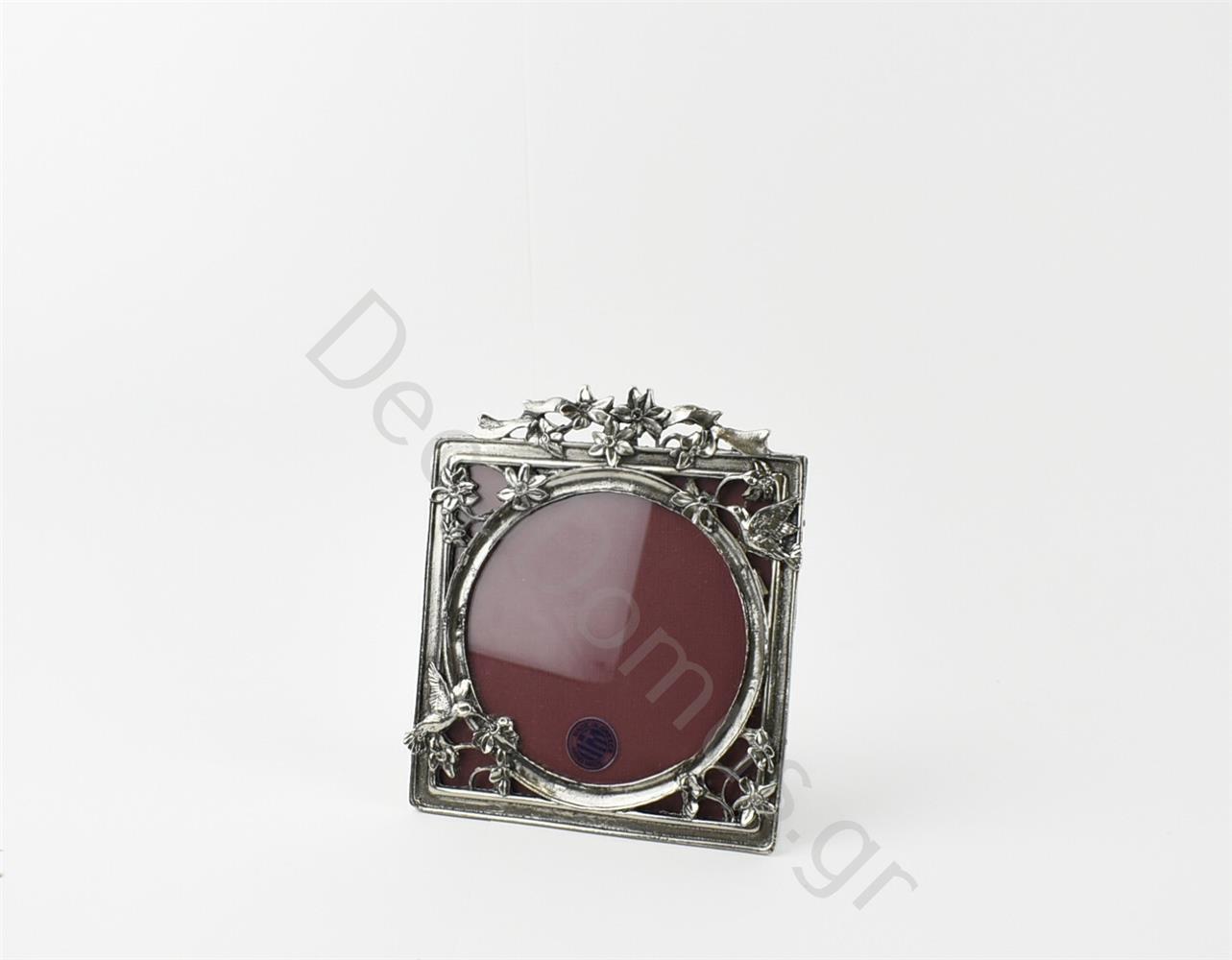 HANDMADE SQUARE SILVERY PICTURE FRAME WITH FLOWERS AND BIRDS (F10) Tin 15x14