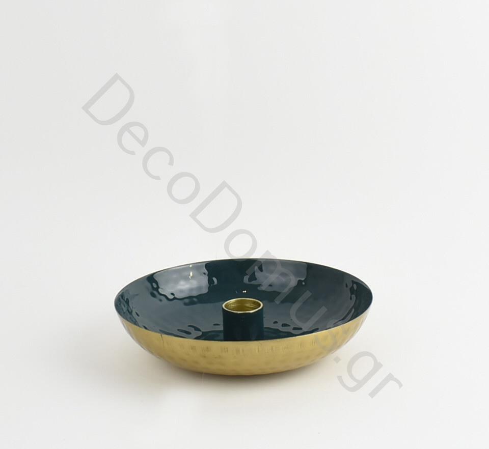 GOLD-DARK GREEN CANDLE TRAY Metal Φ16xh4