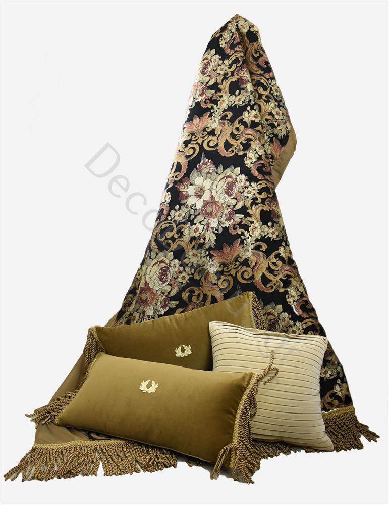 DROP-CLOTH BLACK-GOLD WITH FLOWERS Chenille 175x180