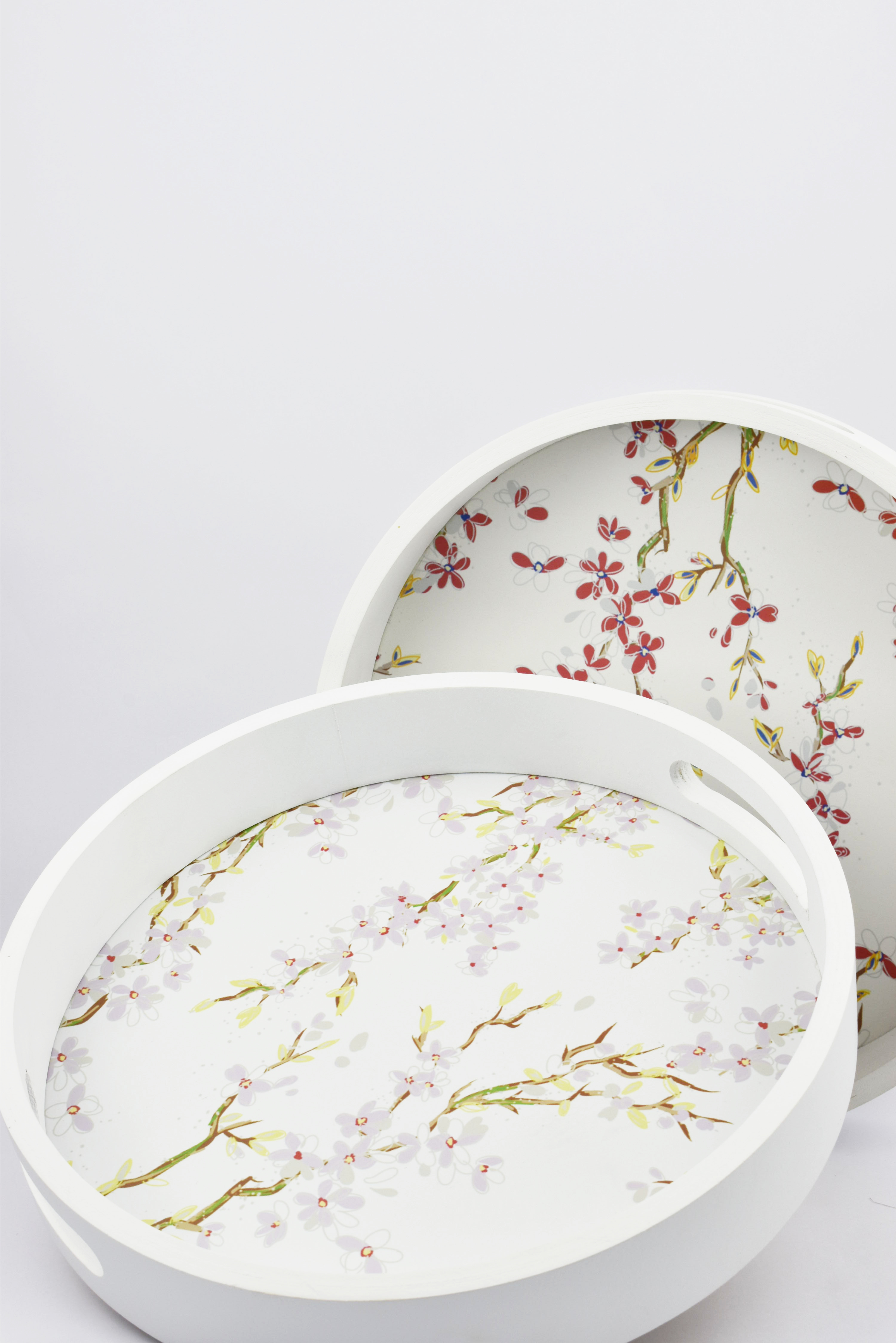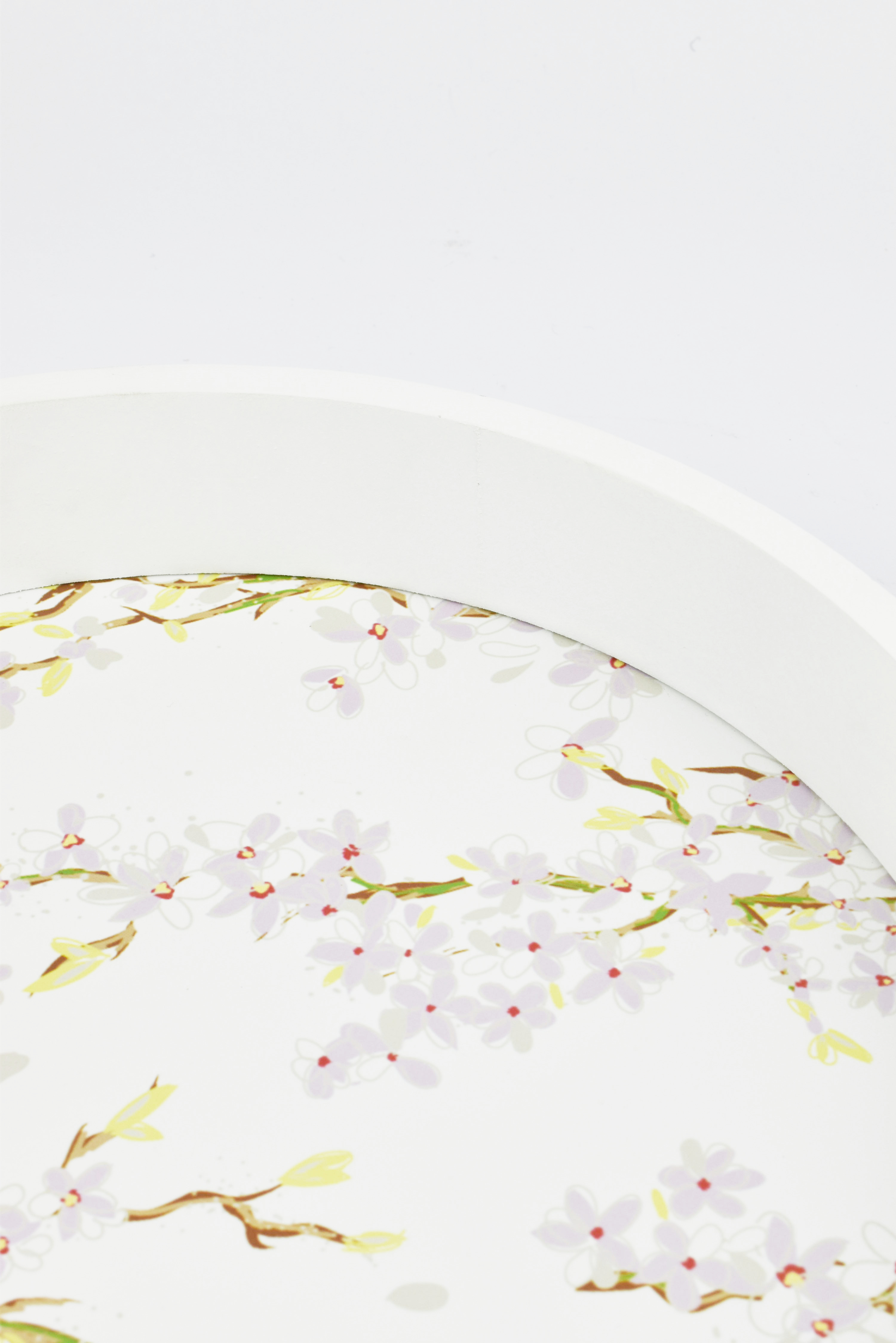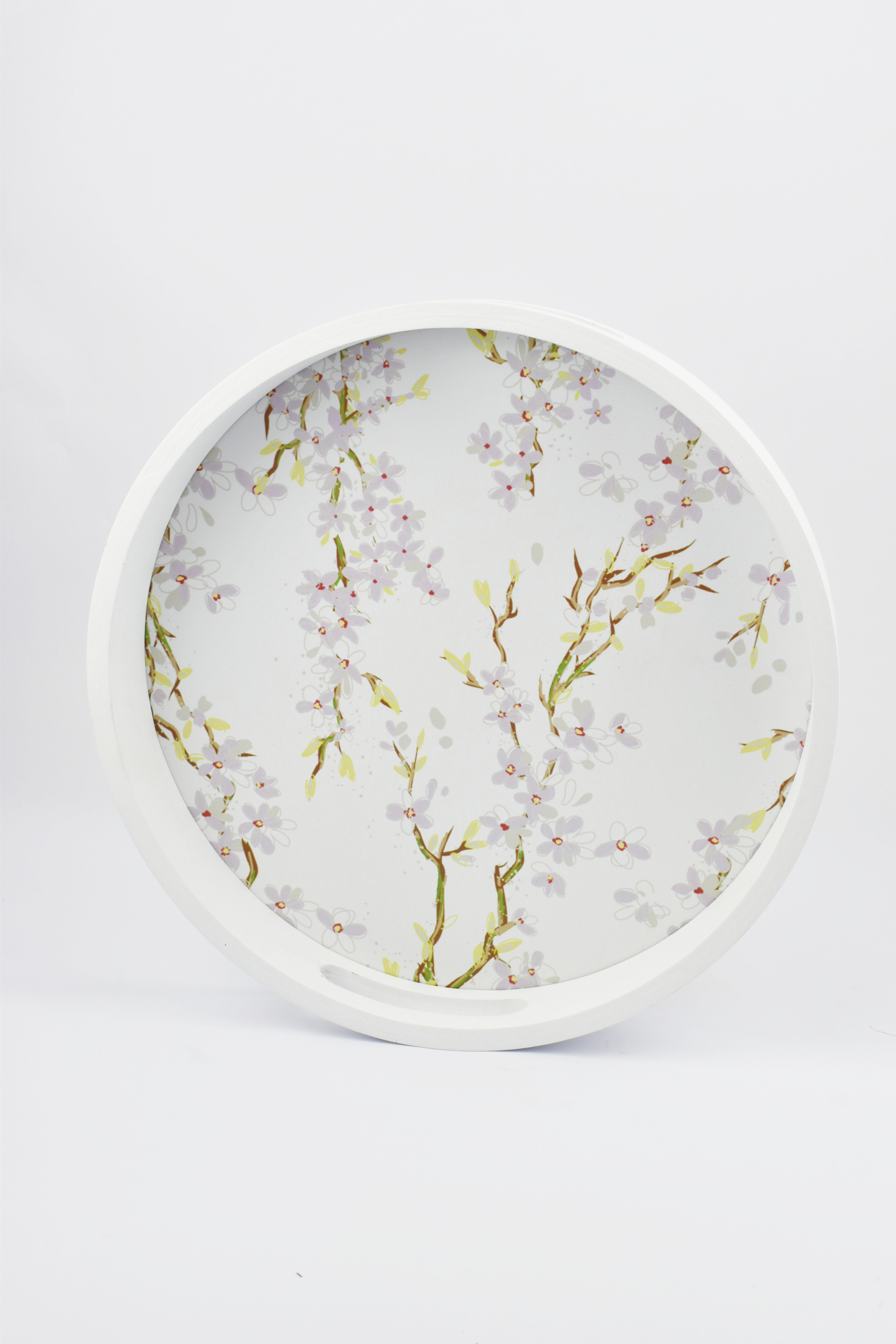 WHITE SERVING TRAY WITH ALMOND TREE Kaemingk Wood Φ29.5*5