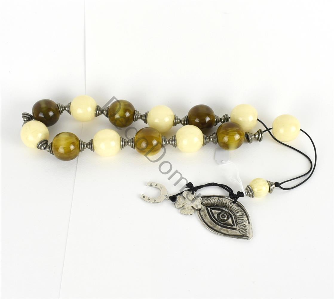 CHARM WITH IVORY-BROWN BEADS AND SILVER EYE 45 CM