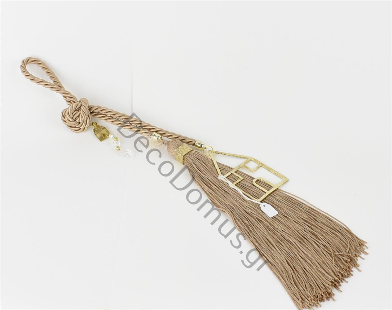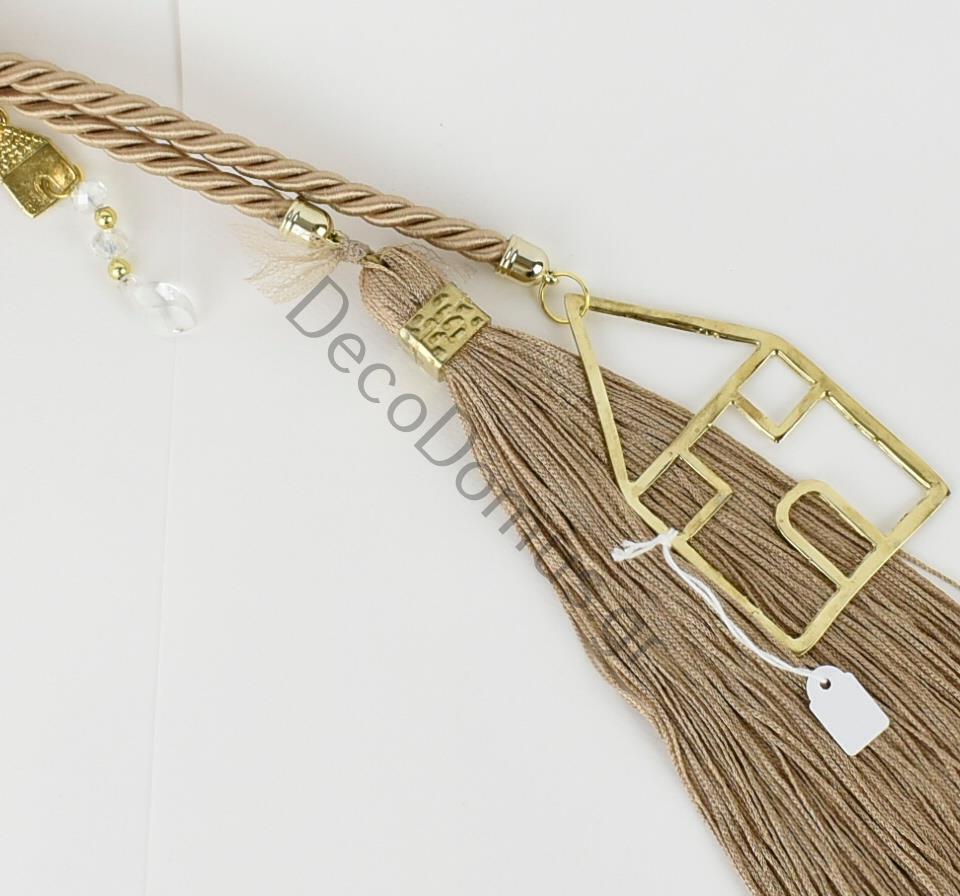 CHARM WITH BEIGE CORD AND GOLD HOUSE Metal 46 CM