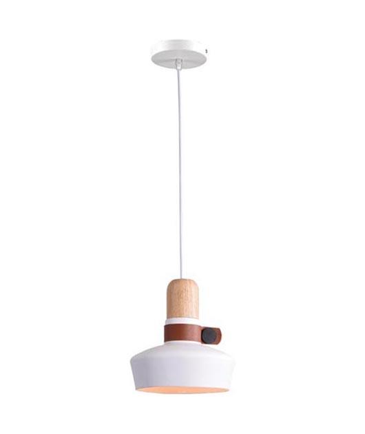 PENDANT LIGHT WHITE MATT WITH WOODEN AND LEATHER DETAILS Metal Φ20xh22