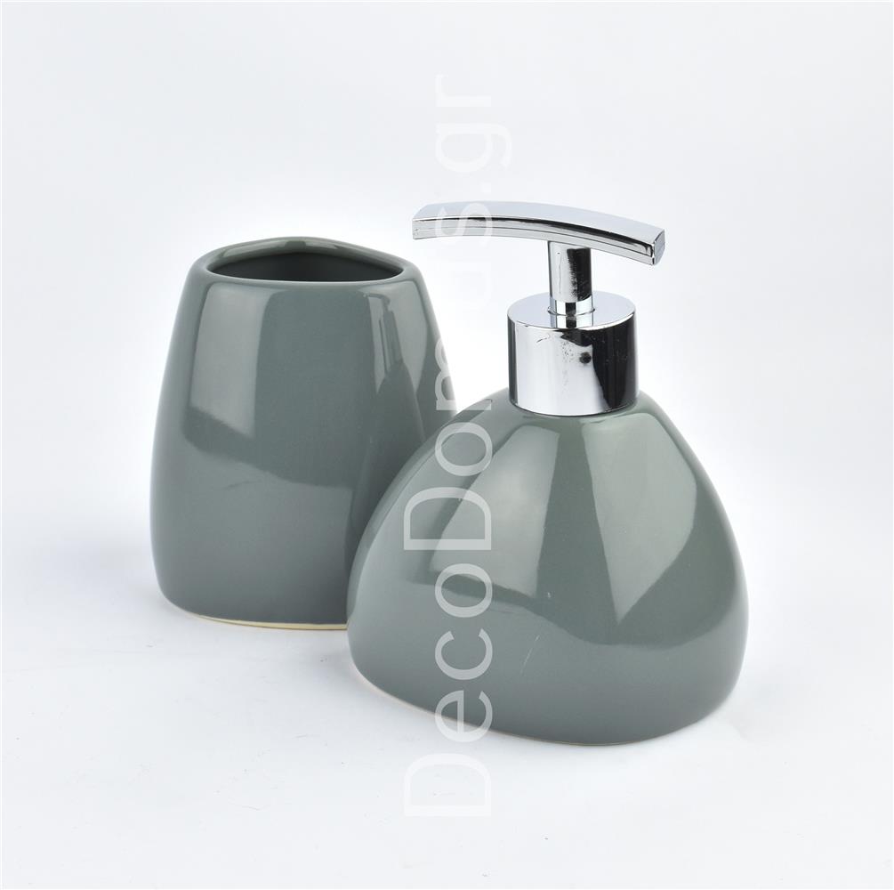 2 PIECES DISPENSER AND TOOTHBUSH HOLDER GREY Ceramic 10.5*8*13