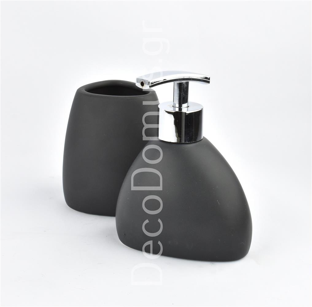 2 PIECES DISPENSER AND TOOTHBRUSH HOLDER BLACK MATTE Ceramic 10.5*8*13