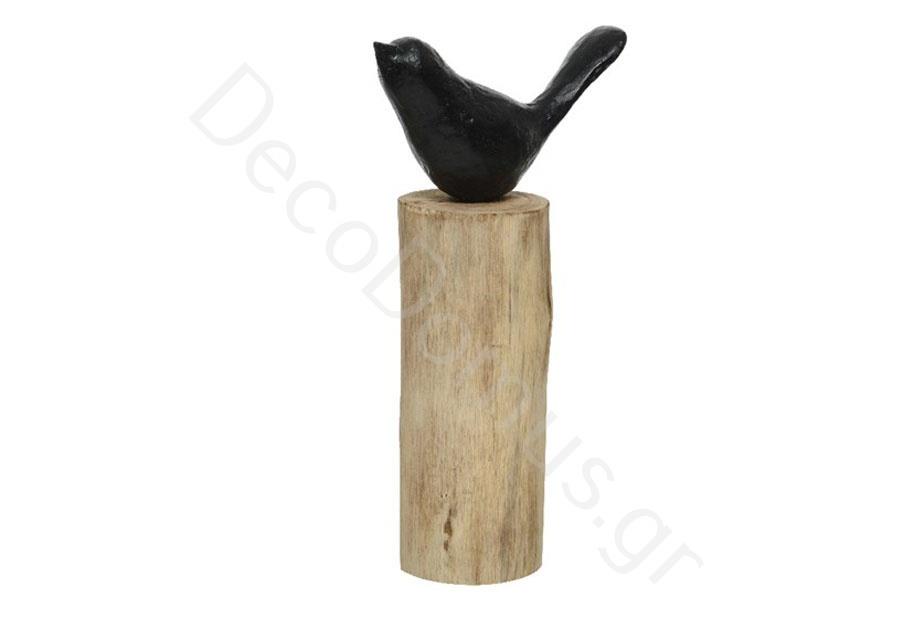 DECORATIVE BIRD WITH RISED TAIL AND HEAD ON TRUNK Wood 15x6.5xh27