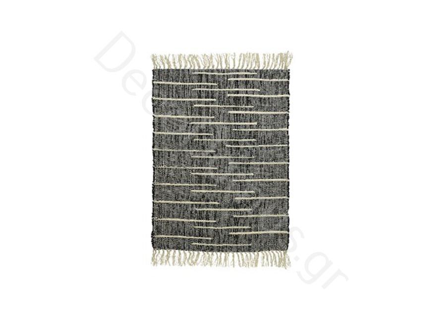 BLACK RUG WITH BEIGE STRIPES Cotton 90x60
