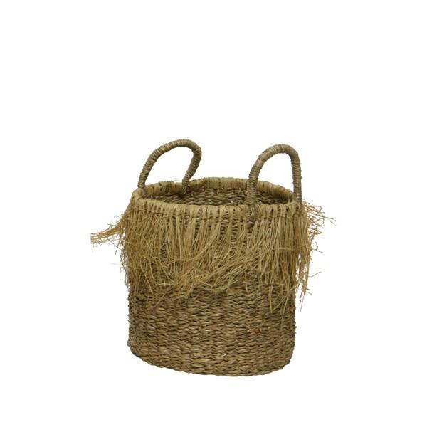 SEAGRASS BASKET WITH NATURAL FRINGES SMALL Straw material Φ24xh24