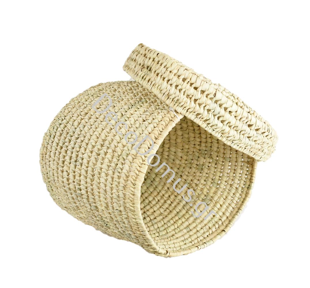 HANDMADE ROUND BASKET WITH LID LARGE Straw material Φ35xh37