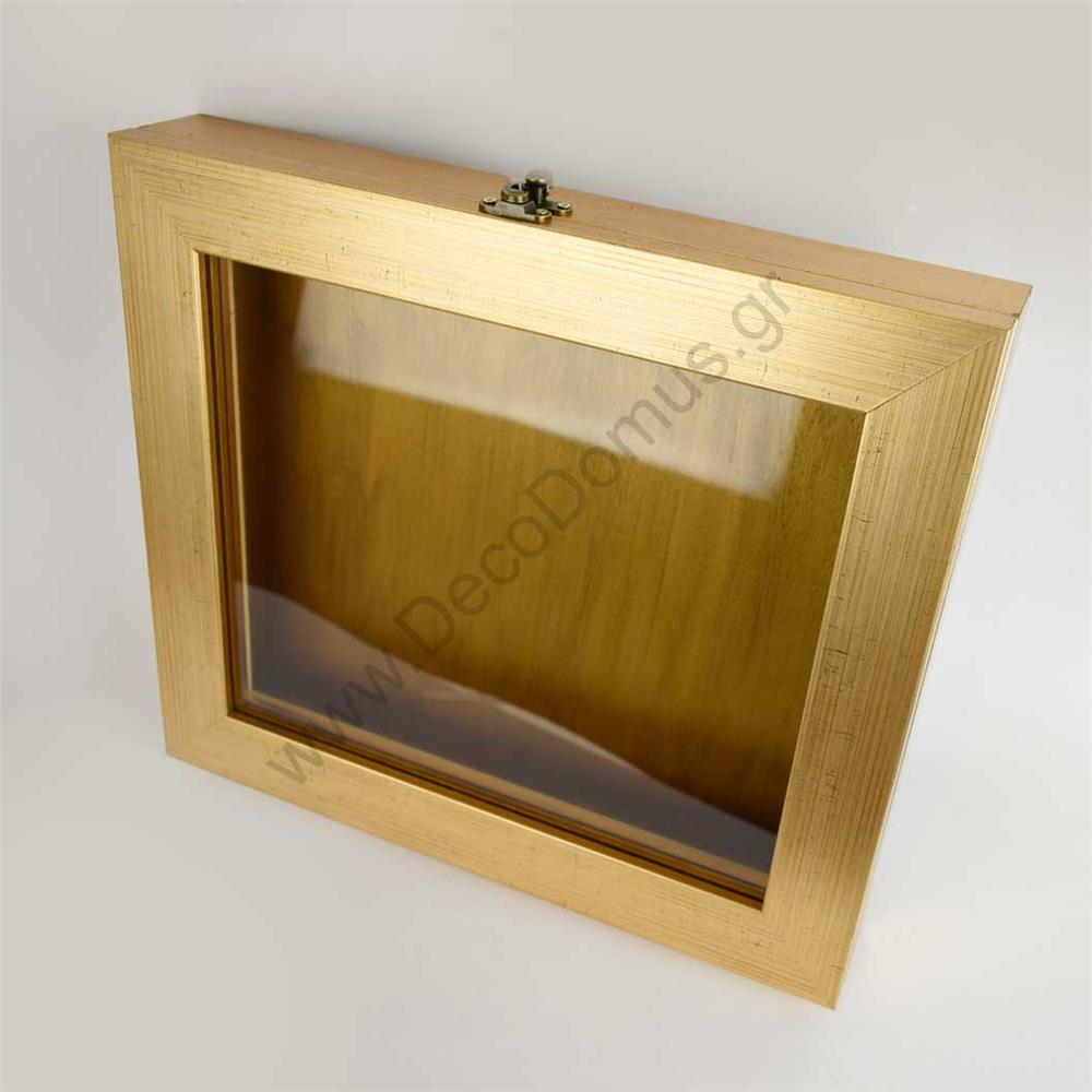 HANDMADE WREATH CASE WITH GOLD LEAF Wood 36x6xh31.5