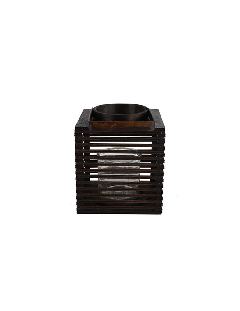 BROWN PARALLEL LANTERN Wood 17*17xΗ20
