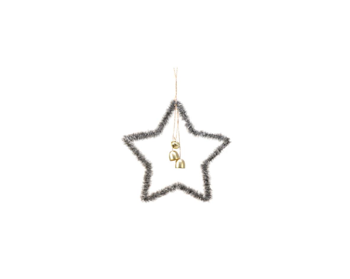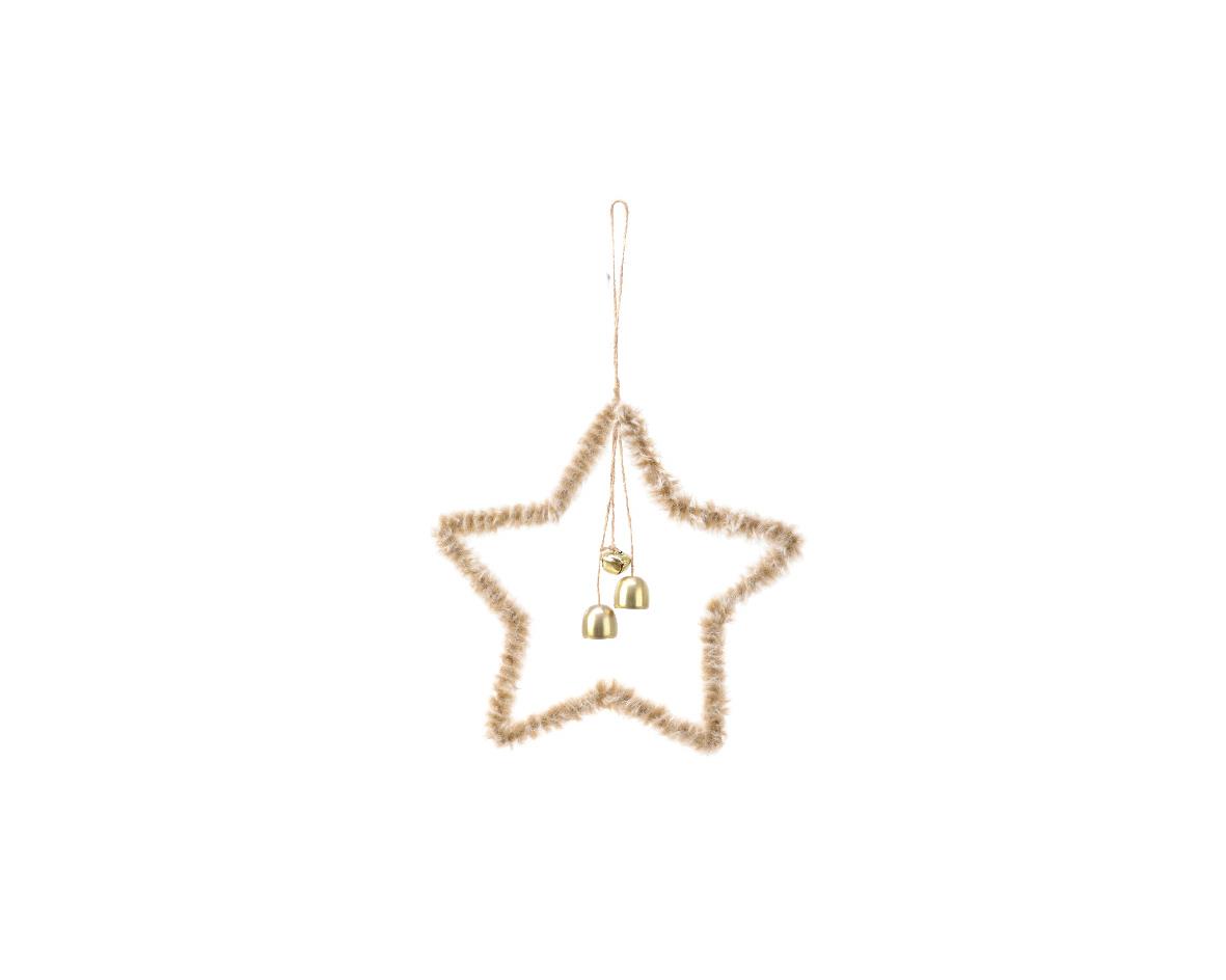 CHRISTMAS BAUBLE FUR STAR WITH METALLIC GOLD BELLS - KAEMINGK Metal 31*31*H2