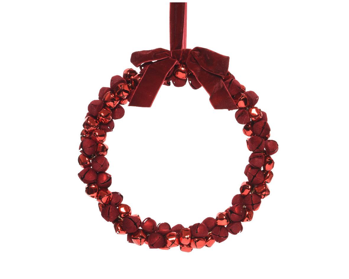 CHRISTMAS BAUBLE WREATH WITH IRON RED BELLS - KAEMINGK Metal 29*29*H4