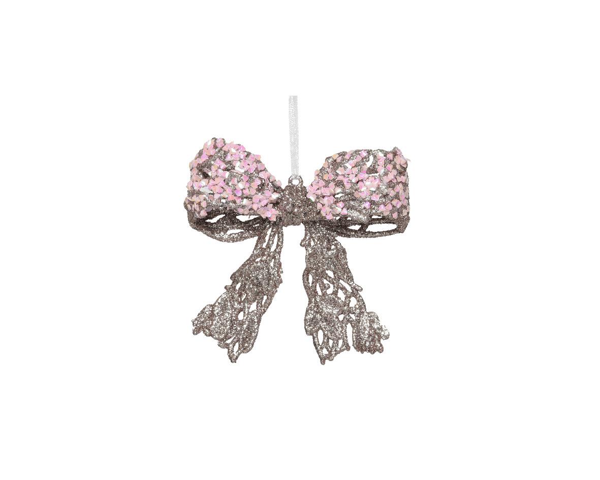 CHRISTMAS BAUBLE BOW PLASTIC PINK WITH SEQUINS - KAEMINGK Synthetic 2.5*11*H12