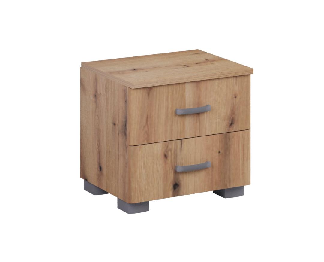 Κομοδίνο Ormaric 2F με 2 συρτάρια και σε 4 χρωματισμούς. Κατασκευάζεται από υψηλής ποιότητας και πυκνότητας μοριοσανίδας (μελαμίνη), πάχους 18 mm, των ευρωπαίων παραγωγών EGGER, KRONOSPAN. Με πιστοποιημένους και εγγυημένους μηχανισμούς των ευρωπαϊκών οίκων INCOLL, HETTICH, TITUS. Μεταλλικά χερουλάκια – πόμολα του ευρωπαϊκού οίκου RUJZDESIGN. Τελείωμα ABS σόκορο, soft forming. Υψηλή αισθητική, άριστη ποιότητα, οικονομική, λειτουργική.