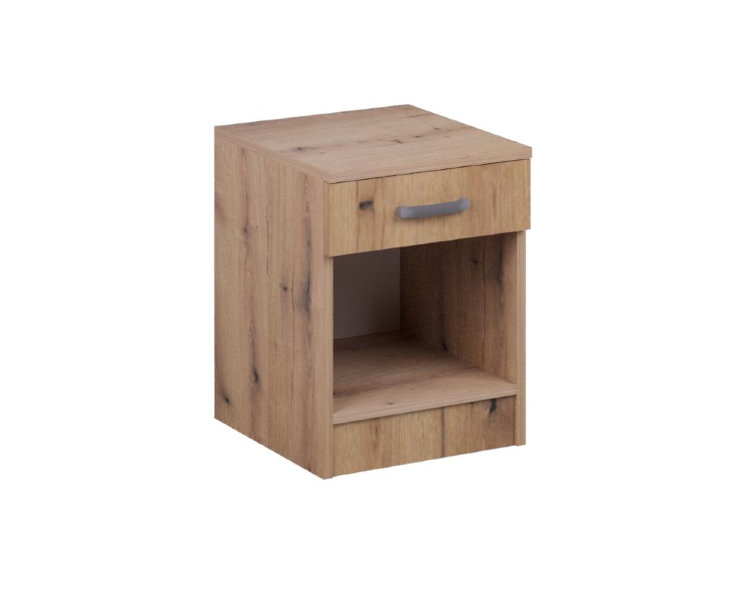 Κομοδίνο Alfa με 1 συρτάρι και ένα επίπεδο για βιβλιοθήκη, σε 4 χρωματισμούς. Κατασκευάζεται από υψηλής ποιότητας και πυκνότητας μοριοσανίδας (μελαμίνη), πάχους 18 mm, των ευρωπαίων παραγωγών EGGER, KRONOSPAN. Με πιστοποιημένους και εγγυημένους μηχανισμούς των ευρωπαϊκών οίκων INCOLL, HETTICH, TITUS. Μεταλλικά χερουλάκια – πόμολα του ευρωπαϊκού οίκου RUJZDESIGN. Τελείωμα ABS σόκορο, soft forming. Υψηλή αισθητική, άριστη ποιότητα, οικονομική, λειτουργική.