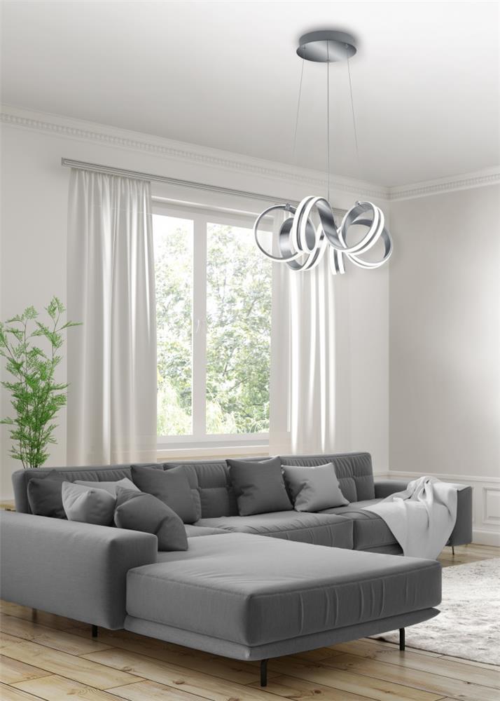 Το σχήμα CARRERA είναι τόσο αρμονικό που συνδυάζεται κομψά με κάθε έννοια δωματίου. Το κρεμαστό φως προσθέτει μια πινελιά κομψότητας και μαγνητίζει τα βλέμματα ακόμα και όταν είναι απενεργοποιημένο. Εξοπλισμένο με ροοστάτη SWITCH, το μενταγιόν είναι λειτουργικό και κομψό, καθώς η φωτεινότητα μπορεί να ρυθμιστεί σε τρία στάδια χρησιμοποιώντας τον διακόπτη τοίχου. Με διάμετρο 55 cm και μέγιστο μήκος ανάρτησης 150 cm, το φως μπορεί να τοποθετηθεί με ευελιξία πάνω από την τραπεζαρία. Σε βουρτσισμένο αλουμίνιο υπογραμμίζει το μοντέρνο στυλ και μπορεί να συνδυαστεί υπέροχα. Επιπλέον, το φωτιστικό διαθέτει σύγχρονη τεχνολογία LED, η οποία χαρακτηρίζεται από υψηλή ποιότητα φωτισμού και ενεργειακή απόδοση. Σε σύγκριση με τους συμβατικούς λαμπτήρες αλογόνου, μπορεί να εξοικονομηθεί έως και 80% του ενεργειακού κόστους. Επιπλέον, οι πηγές φωτός LED έχουν μεγάλη διάρκεια ζωής, παράγουν λιγότερη θερμότητα και προστατεύουν το περιβάλλον.