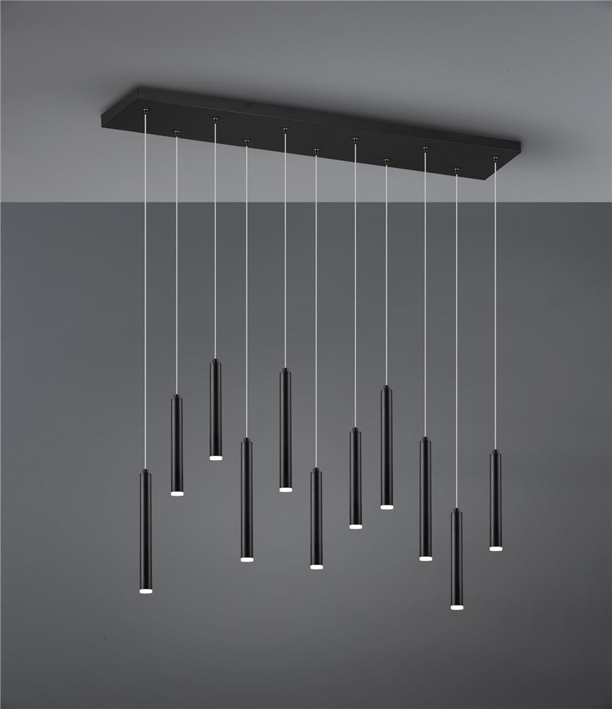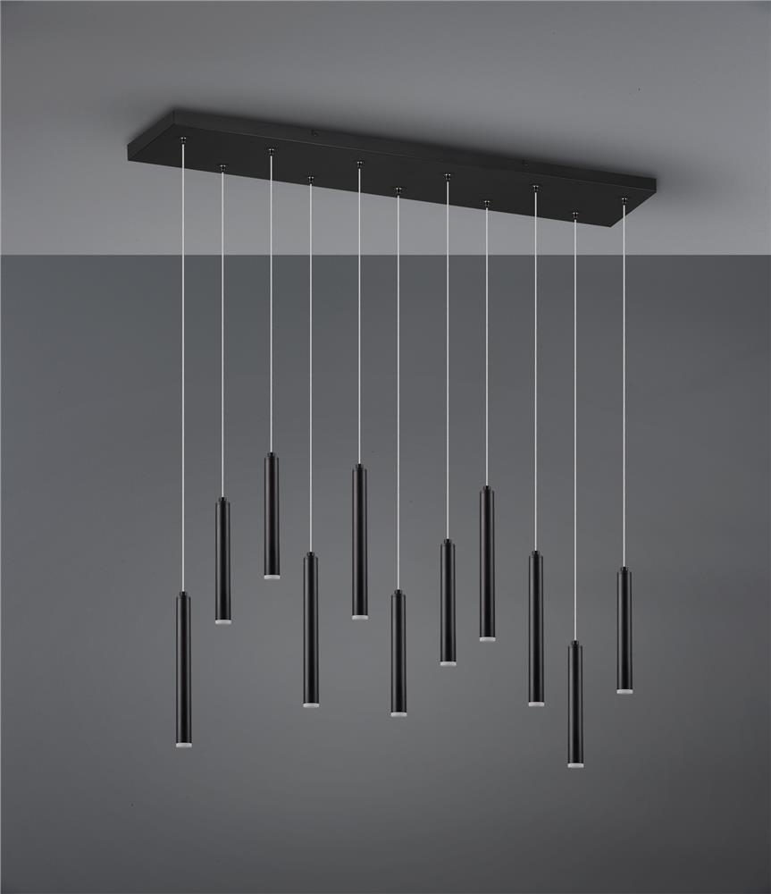 Η κομψή σχεδίαση του κρεμαστό φωτιστικού κάνει το TUBULAR να τραβάει τα βλέμματα. Ως στοχευμένος φωτισμός πάνω από την τραπεζαρία, το φωτιστικό είναι ιδιαίτερα αποτελεσματικό και εξασφαλίζει βέλτιστες συνθήκες φωτισμού. Ένας ενσωματωμένος ροοστάτης SWITCH επιτρέπει τη ρύθμιση της φωτεινότητας από 100% σε 50% και 25% χρησιμοποιώντας έναν συμβατικό διακόπτη φωτισμού. Το 11φωτο κρεμαστό φωτιστικό έχει μέγιστο ύψος 150 cm. Οι επιμέρους πηγές φωτός ποικίλλουν σε μήκος από 22 έως 36 cm και μπορούν να μικρύνουν ανεξάρτητα η μία από την άλλη για να δημιουργήσουν μια προσαρμοσμένη εμφάνιση. Το μενταγιόν σε μαύρο ματ μπορεί να ενσωματωθεί υπέροχα σε μοντέρνους χώρους διαβίωσης και δημιουργεί μια ευχάριστη ατμόσφαιρα. Επιπλέον, το φωτιστικό διαθέτει σύγχρονη τεχνολογία LED, η οποία χαρακτηρίζεται από υψηλή ποιότητα φωτισμού και ενεργειακή απόδοση. Σε σύγκριση με τους συμβατικούς λαμπτήρες αλογόνου, μπορεί να εξοικονομηθεί έως και 80% του ενεργειακού κόστους. Επιπλέον, οι πηγές φωτός LED έχουν μεγάλη διάρκεια ζωής, παράγουν λιγότερη θερμότητα και προστατεύουν το περιβάλλον.
