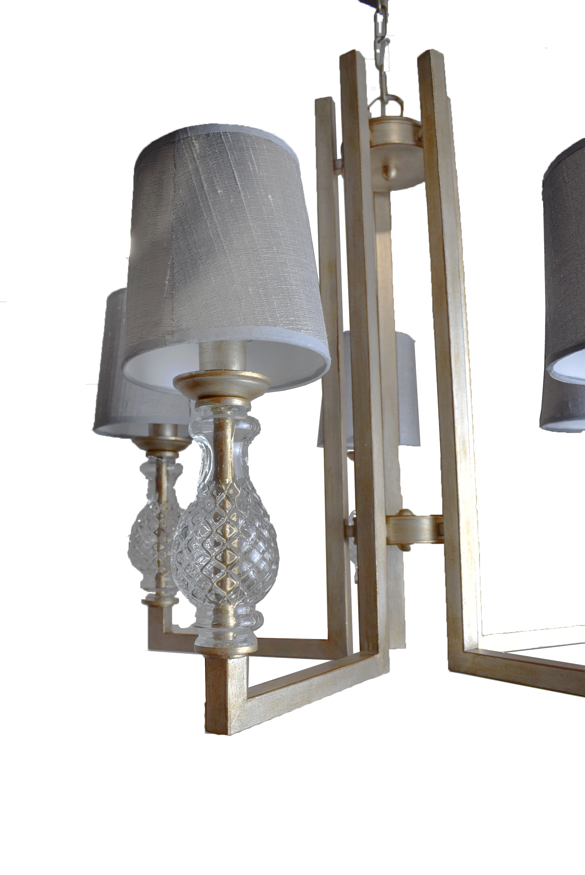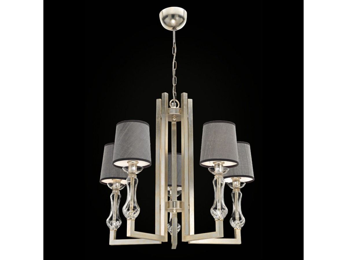 ΦΩΤΙΣΤΙΚΟ ΚΡΕΜΑΣΤΟ 5ΦΩΤΟ ΜΕ ΚΡΥΣΤΑΛΛΑ, ΦΥΛΛΟ ΑΣΗΜΙ ΚΑΙ ΚΑΠΕΛΟ ΓΚΡΙ Μέταλλο 67Χ60