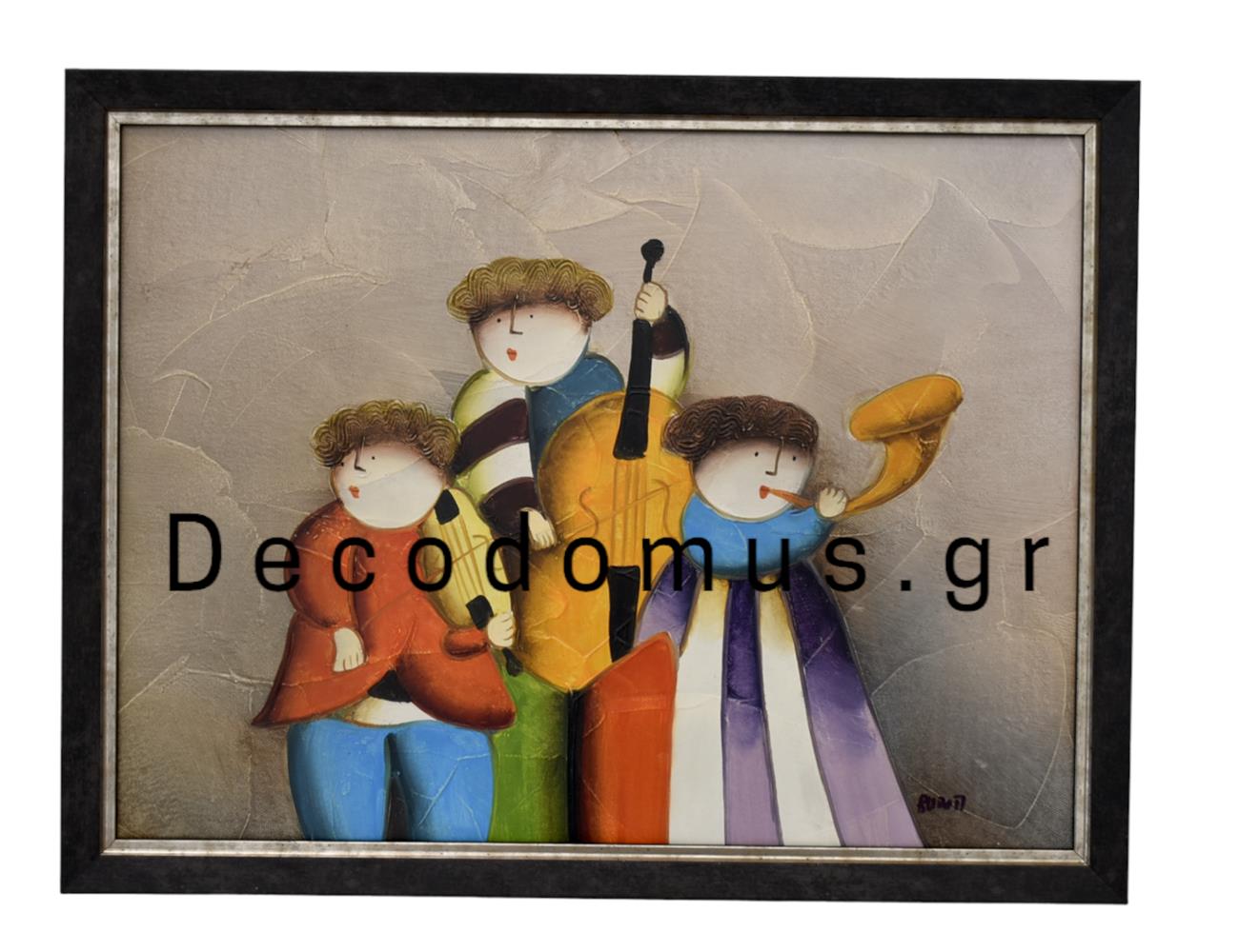 ΠΙΝΑΚΑΣ ΖΩΓΡΑΦΙΚΗΣ ΕΛΑΙΟΓΡΑΦΙΑ ΕΝΤΟΝΑ ΧΡΩΜΑΤΑ `` ΤΡΕΙΣ ΜΟΥΣΙΚΟΙ`` ΜΕ ΞΥΛΙΝΗ ΜΑΥΡΗ ΚΟΡΝΙΖΑ Ξύλο 44*34