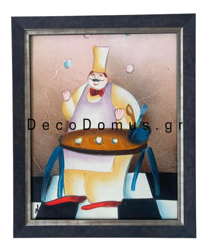 Πίνακας χειροποίητος μάγειρας με τραπέζι.
