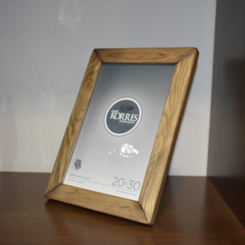 Ξύλινη κορνίζα φωτογραφιών “Mare Medi” εσωτερικής διάστασης 20*30εκ στην απόχρωση Almond Wood (ανοιχτό καρυδί). Είναι κατασκευασμένες από πεύκο άροζο και διαθέτουν sliding back όπου ρυθμίζουν τη κλίση σε επιτραπέζια θέση (οριζόντια ή κάθετη) καθώς επίσης έχουν την δυνατότητα να κρεμαστούν στον τοίχο. Ελληνικής κατασκευής, με χειροποίητη τεχνητή παλαίωση και φινίρισμα από άχρωμο προστατευτικό βερνίκι. Η πρώτη ύλη επιτρέπει να εμφανίζονται τυχόν νερά ή ρόζοι. Το αντικείμενο ενδέχεται να φέρει ελάχιστες αποκλίσεις ανά προϊόν λόγω της χειροποίητης κατασκευής του.