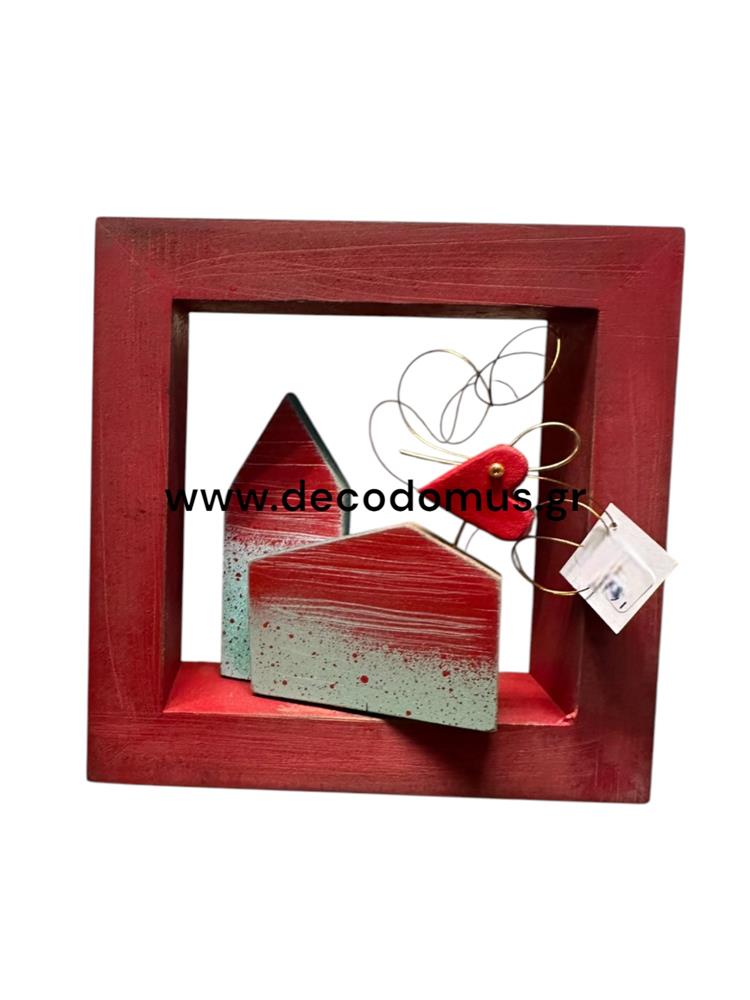 ΞΥΛΙΝΟ ΚΑΔΡΑΚΙ ΜΕ ΣΠΙΤΑΚΙΑ ΚΑΙ ΚΟΚΚΙΝΝΗ ΚΑΡΔΙΑ ΜΙΚΡΟ Ξύλο Μ0.14Π0.04Υ0.14
