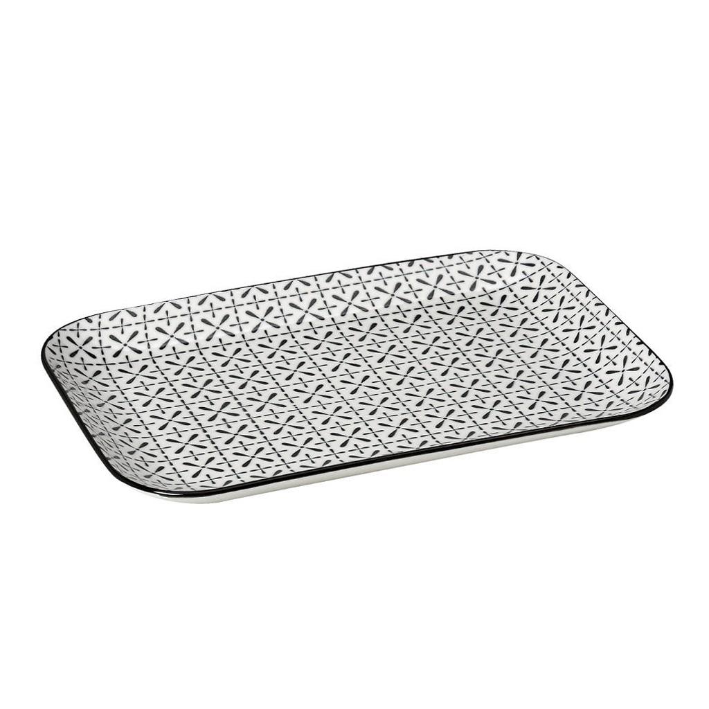 Πιατέλα σερβιρίσματος ορθογώνια λευκή με μαύρα σχέδια.