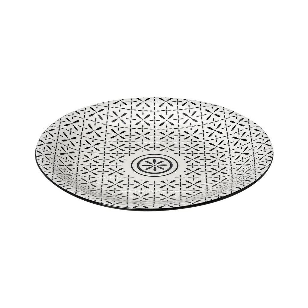Πορσελάνινο πιάτο φαγητού λευκό με μαύρα σχέδια.