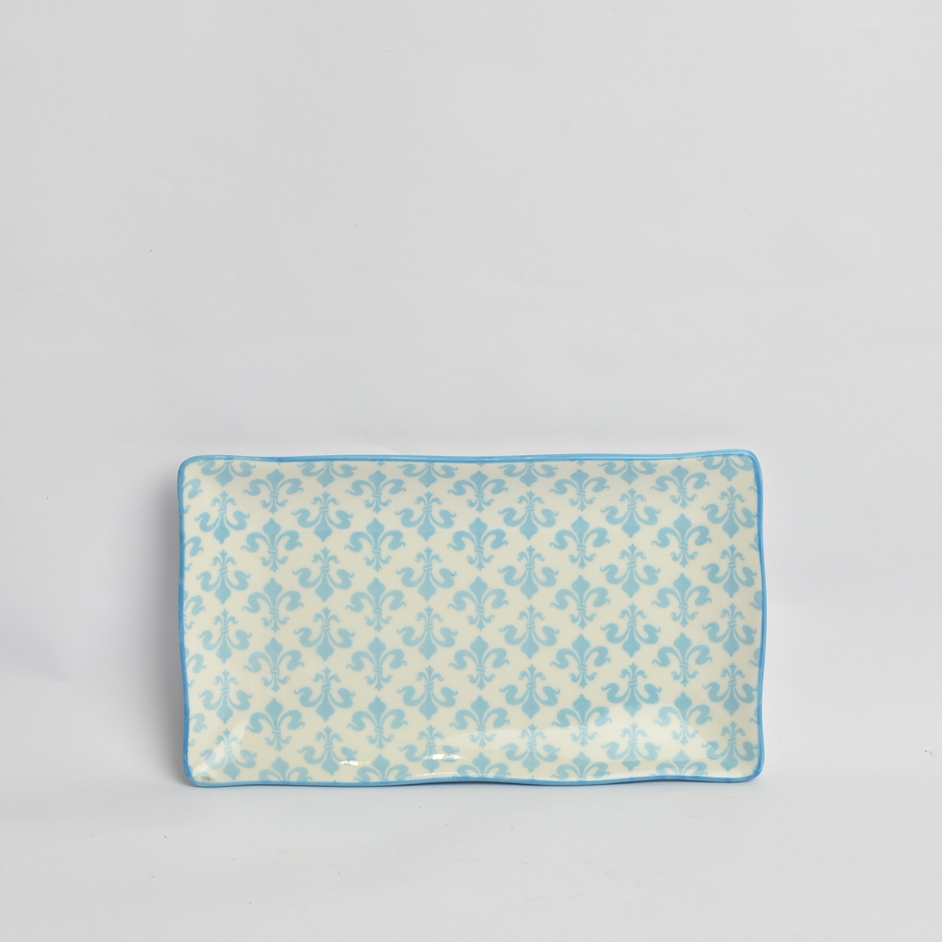 Πιάτο πάστας μακρόστενο stoneware λευκό με γαλάζια σχέδια.