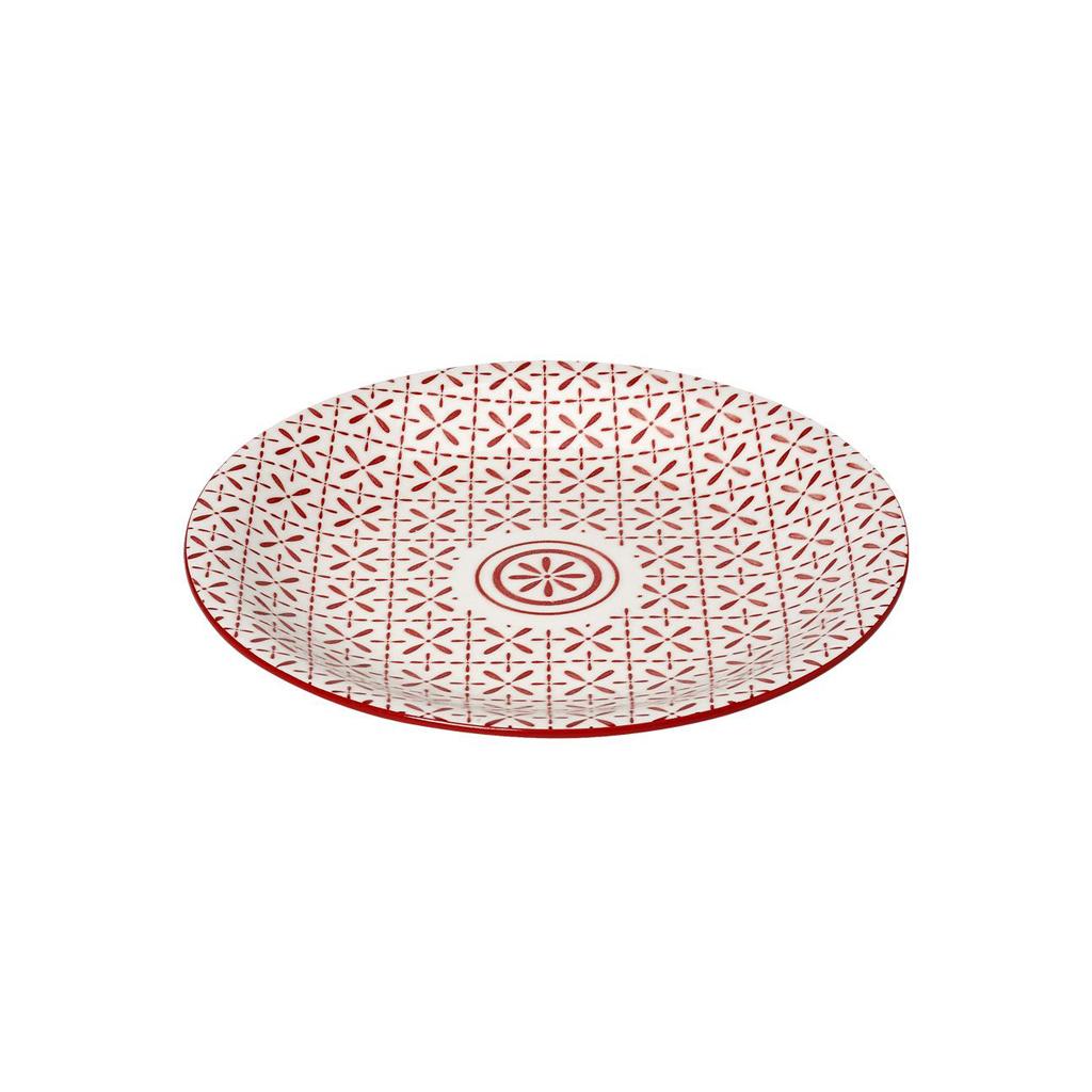 Πιάτο φρούτου stoneware λευκό με κόκκινα σχέδια.