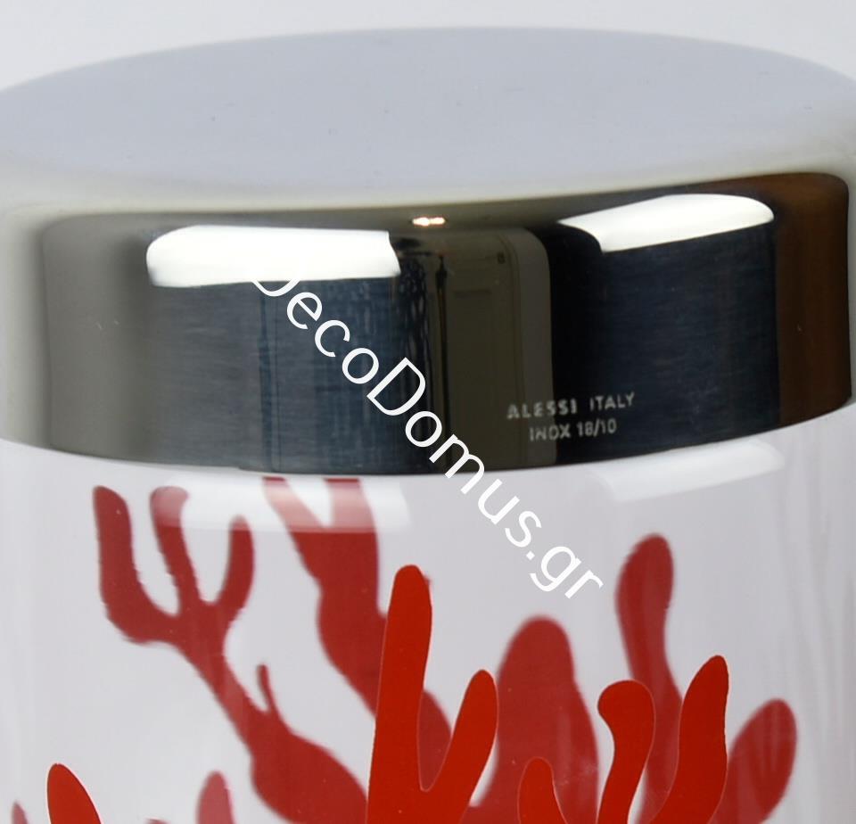 ΒΑΖΟ ΑΠΟΘΗΚΕΥΣΗΣ ΜΕ ΚΟΡΑΛΙ ΚΟΚΚΙΝΟ INOX 18/10 ALESSI Γυαλί Φ10.5*21.5Υ